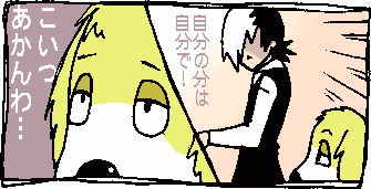 『karute:12/にいちゃんを返せ!』 OP「月光花」の着メロ、イントロ版とAメロ版と2曲取ったのですが、 やっぱり恥ずかしくて着メロには出来ませんでした…隠れファン…? イベントでは設定しようと思います! ビックマスクに大ハマりの写楽に対し、冷ややかな視線を投げ続けるピノコ。 分かるわ…というか、自分の中では結構ギリギリですよ、写楽。 ピノコがゴーラスに夢中になるのは良いんですよね。 ただのゲテモノ好きですし。 ![]() 噂をすれば… 自分のお皿は自分で洗うんでしゅよ! ラルゴが洗ってくれと言う目で見ても ![]() ひととしてどうかと。 それよりBJ、自分で洗えるかな。心配だ。 ![]() タワシ…ひととしてどうかと。 「中のお兄さんは優しくてとっても素敵」 まぁ夫がアレじゃあ浮気したくなる気持ちも分からんでもないです。 ただ、アレ位の普通の人じゃあ満足できなくなると思います。 しかし今回ピノコに構ってもらえないので、 先生出番の多い割に出張ってないと言うか…寂しいね…。 BJは結構モテますが、顔のつくりが普通以下だったら 本当に悲惨だったんじゃないかと思います…。 毎週新しい物になる台本に、歳の離れた弟の写真を貼るのって… かなり…いえ、いいです。何でもないです。 子供に威圧感しか与えないBJに笑。 いえ、子供の気を引くBJもそれはそれでかなり嫌ですけど。 ![]() それにしても弟君の動きがいちいち可愛いというか凝ってると言うか。 スタッフにショタでも居ましたか? 「あっちょんぶりけ…」byBJ これが聞けただけでアニメ化した意義はあった。 す、凄いよ!やったよ!有り難う! そしてこの話の目玉と言えばやはり「ドラキュラーッ!!」 原作のこのシーンが無かったら、私今ここでBJ語りしてる事は 無かったと思います。教えてくれたゆのさん、有り難う…。 ![]() …先生…本気だ… ![]() でも結構可愛い。ジャンプ。 ![]() あ痛! ![]() 本気で痛かった… この先生に萌えたのは私だけではないはず。 「やられた…」は大人として、ちゃんと言えてよかったです。感心。 その後笑いながら去っていくBJ。お疲れ様です!感動した! 写楽の目は、「三つ目がとおる!?と思ってビックリしましたー!」という FANからの意見が欲しいのでしょうが、あえて無視の方向で。 「違う違う、本当なんだってー」「嘘ー」 「それでね、もう大笑いなんら」「へぇーなんだ見たかったなぁー」 「でしょでしょー」 これBJの事話してたと思うと、一気にピノコ黒くなります。 ていうか、真っ先にBJの事だと思った。自分。 別に牙とか付けて無かったけど 付けてるトコ想像したらモエー はい、あーんちてー ![]() 髪どけてるのは、只の私の趣味です…。 【Karute:NG】 監督「カットカットー」わははは ピノコ「や、ホントすいません」 ピノコの舌ッ足らず、演技だったー!! |